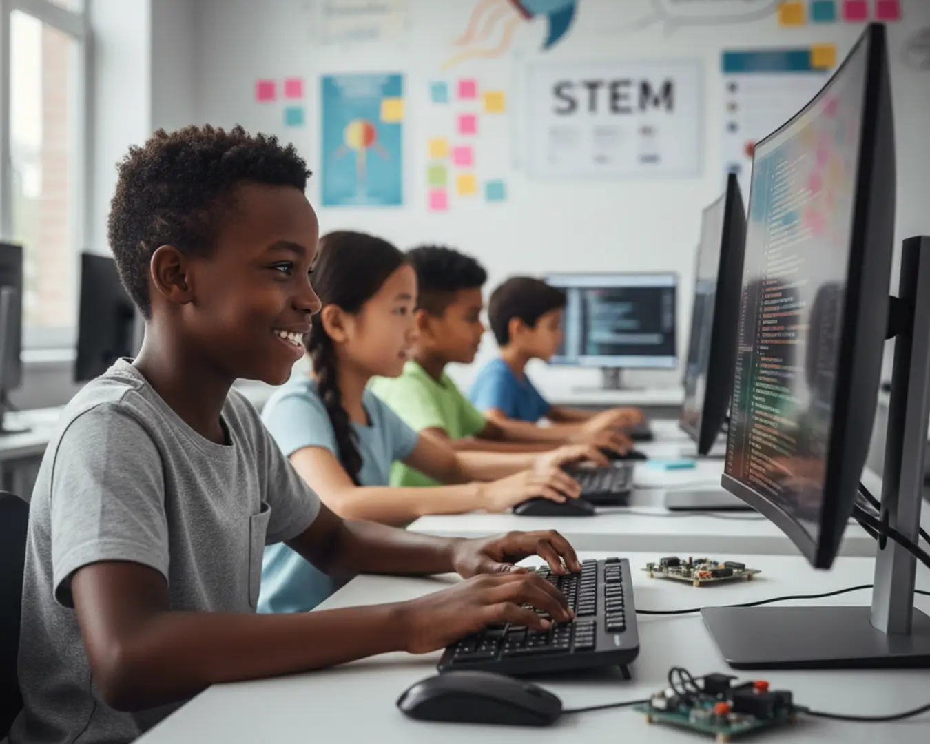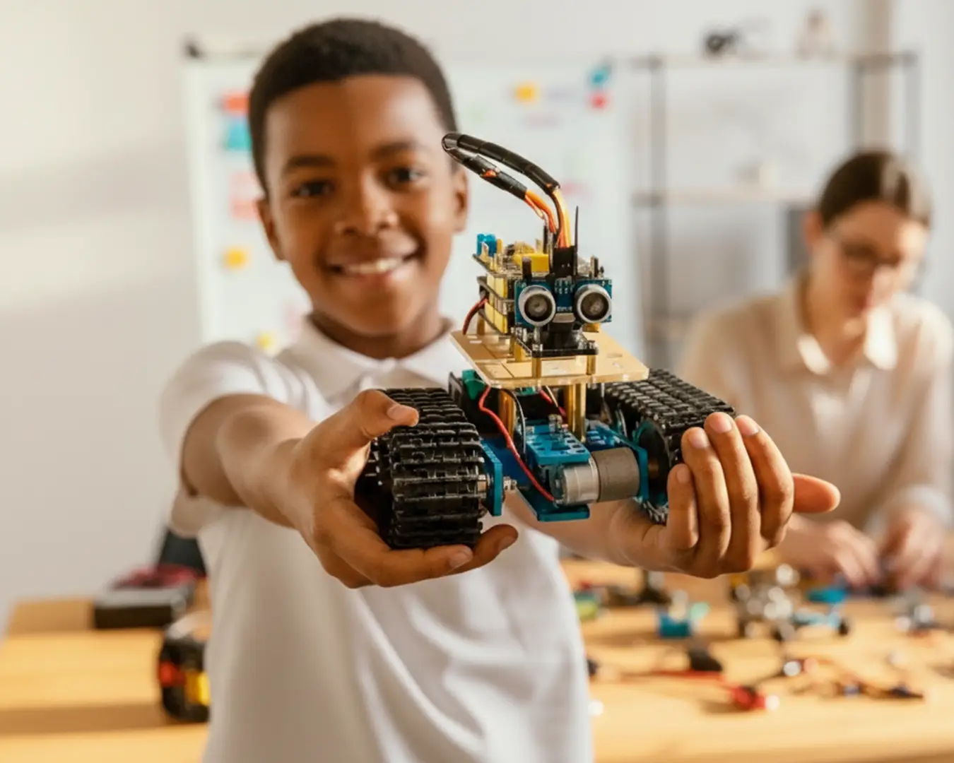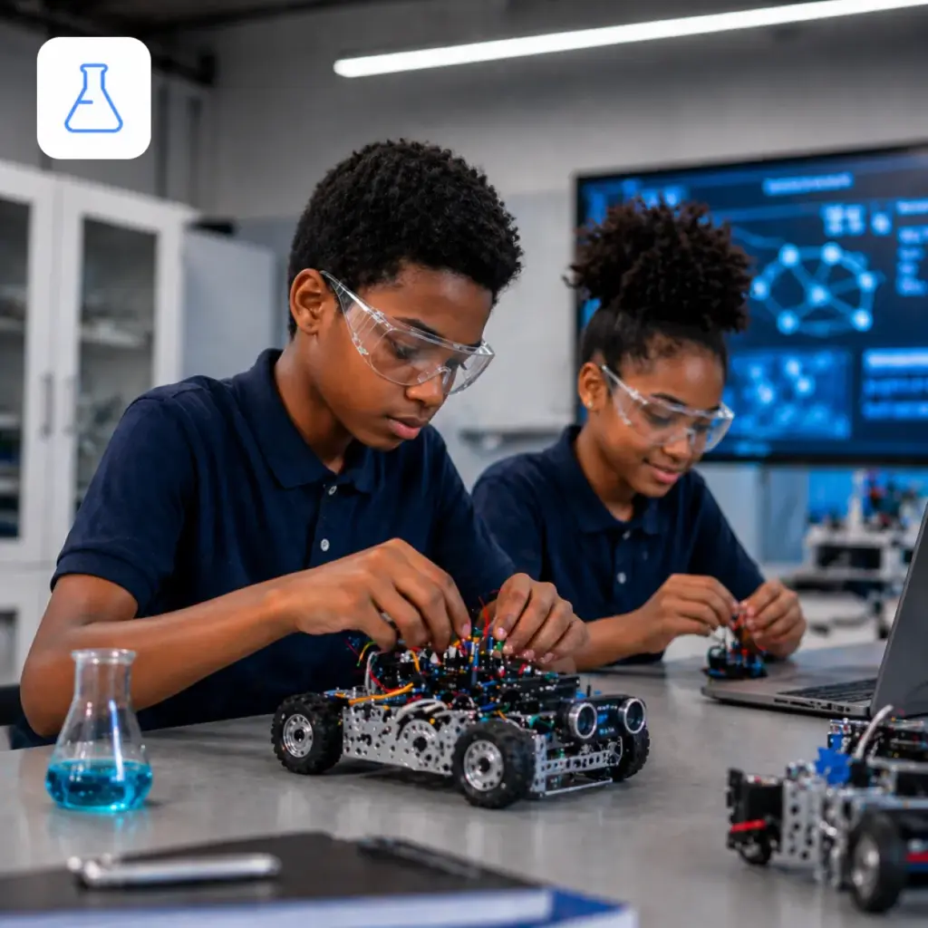Educação STEM para Todos os Níveis. Desde Clubes de Robótica e Programação a Laboratórios totalmente equipados de Ciência, Engenharia e Inteligência Artificial.