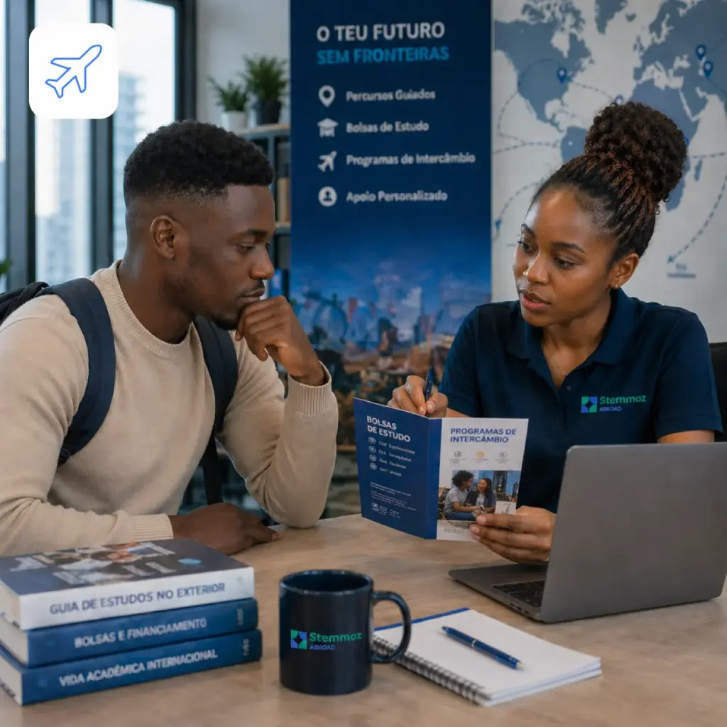 A Stemmoz Abroad oferece percursos guiados — desde programas de Fundação ao Doutoramento — juntamente com bolsas de estudo, programas de intercâmbio e apoio personalizado.