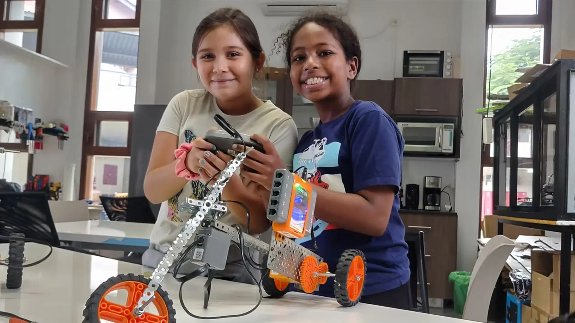Constrói e programa robôs enquanto descobre como as máquinas se movem e respondem, através de atividades práticas que reforçam a criatividade e a resolução de problemas.