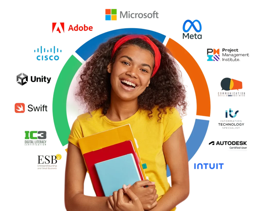 Oferecemos programas que desenvolvem habilidades profissionais e carreira, todos preparados em parceria com líderes globais de certificação internacional.